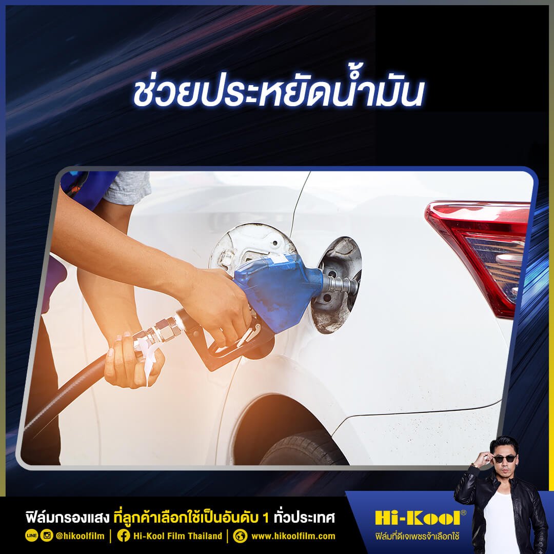 เมื่ออากาศภายนอกรถร้อนมากเท่าไร เราก็ยิ่งต้องเร่งเครื่องปรับอากาศภายในรถให้เย็นสู้แดด จึงทำให้เปลืองน้ำมันเพิ่มขึ้น แต่ถ้าเราติดฟิล์มกรองแสงรถยนต์ ปัญหาเหล่านี้จะหมดไปแถมยังยังทำให้เราประหยัดค่าน้ำมันไปได้อีกด้วย